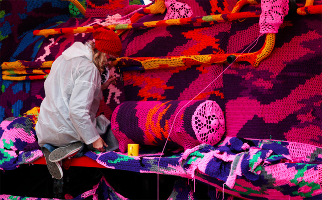 Η Πολωνή καλλιτέχνιδα και μάστερ του… πλεξίματος Olek επανήλθε στη γενέτειρά της με ένα τουλάχιστον εντυπωσιακό art project και μάλιστα σε δημόσιο χώρο. Σε διάστημα τεσσάρων ημερών η ίδια και οι επιδέξιοι συνεργάτες της έπλεξαν μία ολόκληρη ατμομηχανή στην πόλη Lodz και τη μετέτρεψαν από ένα μουντό αντικείμενο σε ένα κάπως ψυχεδελικό αξιοθέατο, το οποίο θα εκτίθεται έως τις 19 Αυγούστου.